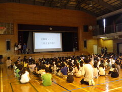 委員長から活動内容の紹介があり、どの委員会も一生懸命取り組んでいる様子がよく伝わってきました。今後の活動にも期待が高まります。下級生の聞く態度もよく、よい集会になりました。