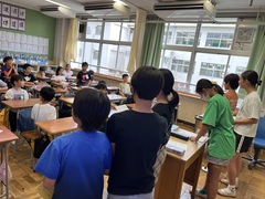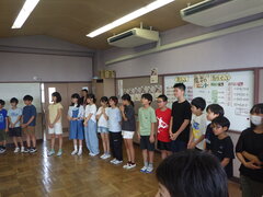 終業式では、3年生代表児童が1学期に頑張ったことを堂々と発表しました。校長先生からは「目標や夢をもち努力を続けることが必ず力になること」「やってみようと思ったその一歩が成長につながる」という話がありました。子供たちは真剣な表情で耳を傾けていました。安全に気を付けて、充実した夏休みを過ごしてほしいと思います。