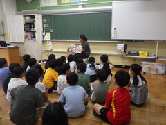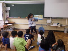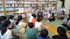 1学期最後の「よむよむ」の時間。こどもたちはニコニコと笑顔を見せながらも、物語に引き込まれるような眼差しで聞き入っていました。
