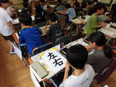 「左」と「右」の違いを全体で確認し、筆順と字形の関係に気を付けて書きました。集中して、一画一画丁寧に描く様子が見られました。
