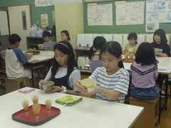 2年生がとうもろこしの皮むき体験をしました。ひげや葉を1枚ずつ丁寧にむき、「中に黄色い粒が見えた!」と大喜び。自分たちでむいたとうもろこしが今日の給食に出るのを楽しみにしていました。