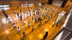 4年生の花笠音頭の練習風景です。先週までは、練習用の紙の花笠でしたが、今週からは本番用の花笠を持ち、練習に励んでいます。また、ダンスリーダーを中心に4年生みんなで心を一つに表現します。当日は、花笠とともに鈴と花も付くので、踊りと合わせてぜひお楽しみください。