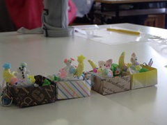 18日の半挽回に向けて、自分たちが心を込めて作った作品を一つひとつ丁寧に袋詰めをしました。来てくださるお客様に喜んでもらえるように準備を進めています。当日の販売会が楽しみです。