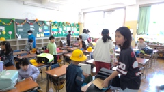 4年生は、今週から理科でヘチマの観察を行います。種が発芽し本葉になるまでは教室で1人1つずつ育て、その後は学級園で育てる予定です。土の入れ方にこだわったり種に名前を付けたりする様子から、ヘチマを大切に育てていきたいという気持ちが伝わってきました。