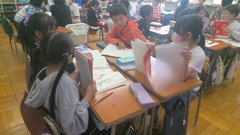 4年生の国語で、「力を合わせてばらばらに」の学習を行いました。テーマに沿って思い浮かべた物が、班全員でばらばらになるように協力します。友達の説明をよく聞いて予想し、もし自分と被ってしまっていると思ったら、別のものに変えることがポイントです。 友達の話をよく聞くこと、自分の思い浮かべた物を分かりやすく説明することを意識して、ばらばらにすることができました。