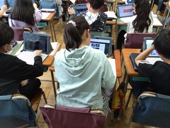 池上小学校では、毎月「ICT朝会」の時間を活用して、SNSについて考え、学んでいます。高学年では、情報の見方、考え方で大切にしたいことを確認しました。「だ」誰が言ったか、「い」いつ言ったか、「じ」事実と意見、「で」データは正しいのか、「す」すぐに広めない、という5つの見方について、これからもこどもたちと学んでいきたいと思います。