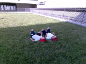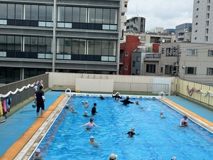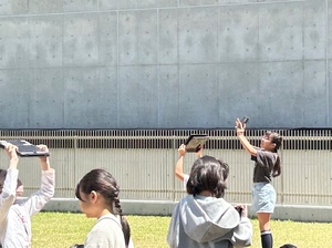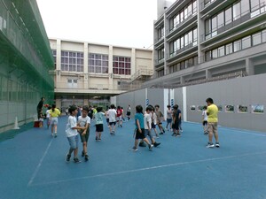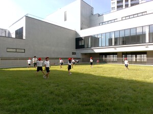 屋上には芝生の校庭とプールがあります。プールは今季は終了しましたが、芝生の校庭では体育の授業も行われます。昨日の午後、3年生がはじめての芝生校庭利用で楽しく寝そべったり鬼ごっこをしたりしていました。