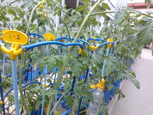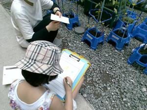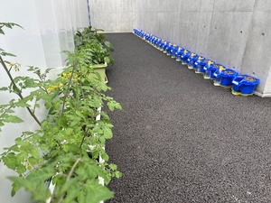 ミニトマトの成長を毎日見守っている二年生。梅雨入りまじかの最近、この時期よく成長しています。黄色い花に興味をもち観察シートに花の絵をかいていました。鉢によっては小さな実がついているものも見られます。毎日気にしながら大切に育てています。