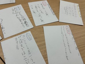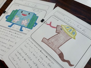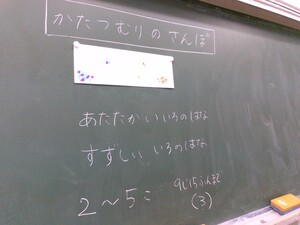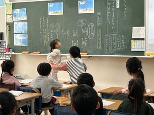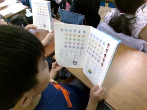 1年生は入学後、「ひらがな」一文字一文字から学んできましたが、かるたのようにこんなに書いたり、また短いものがたり(写真は「くじらぐも」の学習の様子」をよんで想像したりできるようになりました。来年はいよいよ新入生の先輩になります。次の1年生にもいろろなことが教えられる先輩になれそうですね。