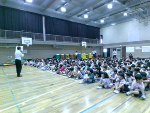 あと一か月もすると夏休みに入ります。学校でも学校外でも安全に日常が送れるよう今日は大森警察署の方を招いて、安全教室を開きました。みんな一生懸命にお話をうなずきながら聞いていました。