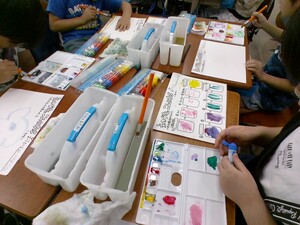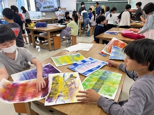 梅雨入り宣言がなかなかありませんね。このような時節柄、教室での活動も何となく鮮やかな色を使った活動に目がいきます。2年生が絵の具を上手に使って、色の濃淡を生かした作品をつくっていました。「こんな色ができたよ」と色を混ぜて作った新しい色を嬉しそうに見せてくれました。