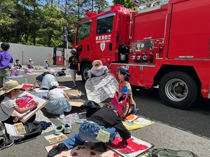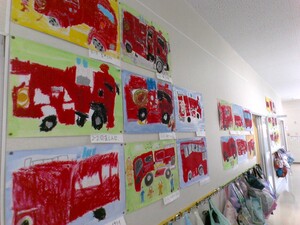 今日も暑くなりました。校舎内には2年生の活動に関係する真っ赤なものがあります。熟し始めたミニトマトに消防写生会で描いた絵。どれも真っ赤です。2年生の元気とパワーを感じる色です。