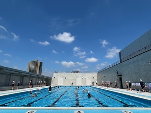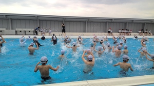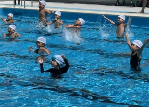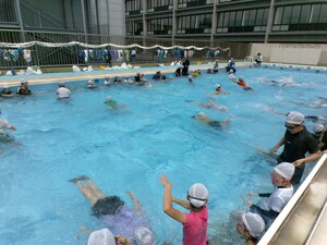 朝から蒸し暑く、このような日は水泳指導もこどもたちは楽しみにしています。午前中はちょうど五組と2年が水泳指導を行っていました。安全に気を付けて、楽しく学習しています。