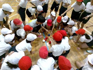 今年のスポーツイベントではこどもたち全員が初めて「大玉おくり」を紅白対抗で行います。150周年記念キャラクターのまんじゅーずが大玉に変身して大喜びのこどもたち。赤はさく組、白はきり組で、かわいい紅白まんじゅーずがこどもたちの頭上を飛び跳ねていく予定です。ぜひ当日ベストショットの撮影をお楽しみください。