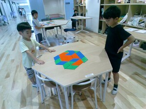 本日まで「プレ公開授業」を開催しています。3年生は国語と音楽、4年生は社会と算数の学習を自分の計画で選んで進めています。素敵な表示がたくさんあるのですが、ここでは3年の物語をつくる学習に没入できる環境と4年の垂直と並行の世界を楽しむ環境を見ることができます。来週は5・6年の環境を少しだけご紹介し、ぜひ18日の研究発表会で体感してください。