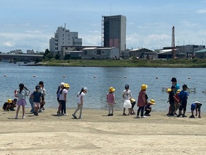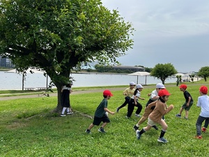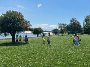 5月も終わりに近づき、蒸し暑い日も増えています。今日は1・2年生が大森ふるさとの浜辺公園へ来ています。異学年で仲良く遊んだり、海風を受けながら気持ちよく過ごしたりしています。明日からまた天候も悪くなる予報なので、今日行けてよかったですね。