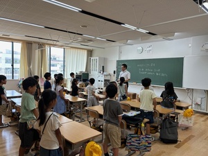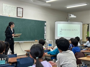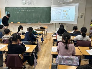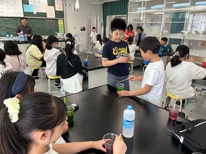 毎日の生活に欠かせない水。今日は4年生が使った水がその後どのように処理されているのか学習していました。再生処理センターの方の分かりやすくてテンポのいいお話と具体的な実験を通して、使用した水が処理水として海に流され、さらにそれらが雨水となって循環していることなどを学びました。これからも水を大切に使っていくことの意識の向上にもつながったようです。