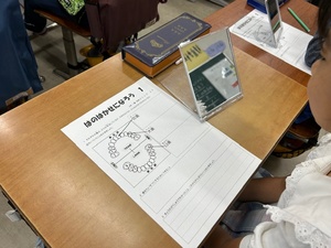新校舎になって、通級指導学級のきこえとことばの教室も一緒の場所になりました。今日は3年五組さんが勉強のため見学をしました。