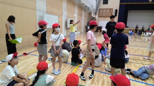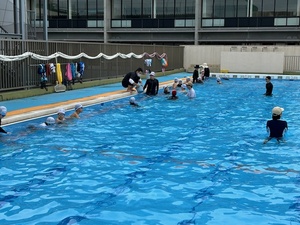 連日の猛暑日に体力も消耗します。今日は2・4・6年生を対象に着衣泳の指導がありました。天候と健康状況を考慮し、時間を短くして夏の水の事故から身を守る方法について学びました。