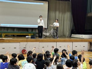 夏休み前に毎年自転車教室を3年生対象に行っています。昨日、大森警察署から自転車を持ち込んでの安全教室が開かれました。自転車は便利ですが、危険も伴います。ヘルメットを着用して、安全に乗れるようにしてほしいです。