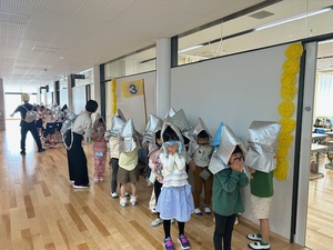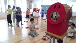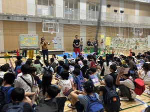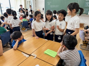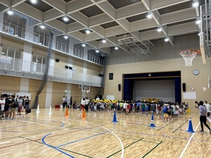 今日は学校・夏のイベント、入りっこフェティバル。3年生以上が各クラス・学年で工夫した交流場を作り、他学年と一緒に遊びの交流を行いました。理科の学習で作ったゴーカートを使ったり、今回のイメージキャラクター「たこ(他者と交流の頭文字を使って)」をテーマにしたアドベンチャーを企画・運営する企画があったり、年々使うものもSDGsに配慮し取り組んでいる様子が伺えました。みんな「笑顔」で活気あふれるすてきな行事になりました。