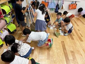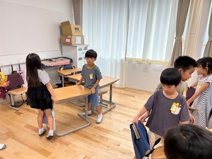 夏休みも間もなく終わります。台風接近中ではありましたが、今日は新学期が始まる前の事前登校日でした。雨の中、早くから登校してきたこどもたち。理由は待ちに待った新校舎に入れるから!?!。「わあ、きれい!」「たくさん部屋があってすごい!」など興奮気味でした。来週からいよいよ新学期が始まります。楽しみな二学期にきっとなりそうですよ。