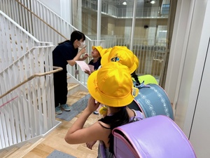 新校舎になって、校舎内にある学童と放課後子ども教室に分かれて通う児童がいます。今日も担当の先生たちが確認をして案内していました。慣れるまでいろいろ大変ですが、こどものほうが適応力が高いです。