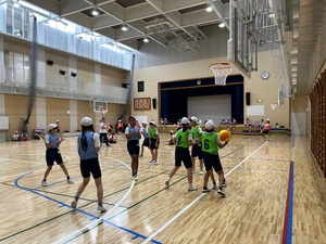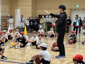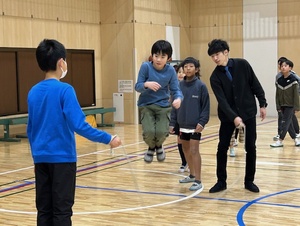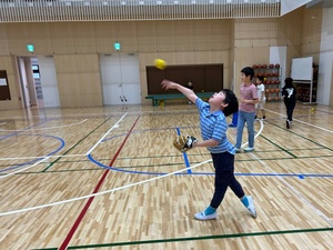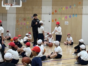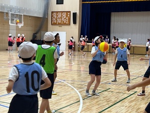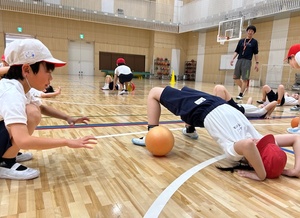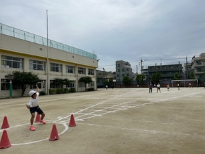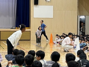 今日はジャイアンツアカデミーの二人のコーチ、與那原コーチと井納コーチが来校し、6年生にベースボール型のゲームやボールにたくさんふれる活動を指導していただきました。與那原コーチは昨年に続き2回目です。プロ野球選手を目指しているこどもたちにはとても刺激になったようです。