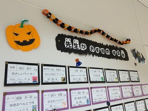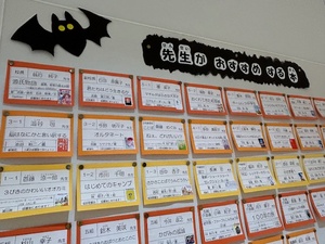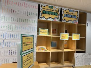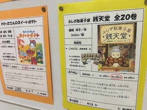 図書室前に本物そっくりの駄菓子が並んでします。これは「ふしぎ駄菓子屋」銭天堂の本の紹介として、司書の先生が本物のように作ってくれたものです。見れば見るほど、よくできていて、「こんな駄菓子あったらいいな」「この本を読んでみたい」などの気持ちにさせてくれます。明日から三連休です。読書に親しむ時間もとれるといいですね。