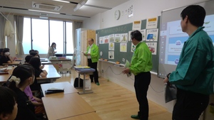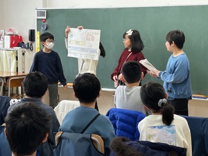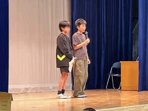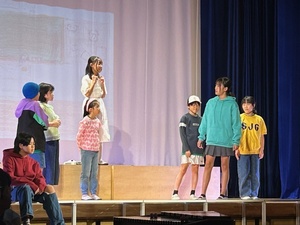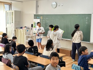 5・6年生は大森の街を盛り上げるために、和菓子屋さんや大森駅、パン屋さん、保育園などが困っていることを解決する解決策を考え、提案しています。今日は地域の関係の方に、こどもたちの考えた解決策を聞いてもらい、さらに意見をもらう活動を行っていました。相手に一生懸命自分たちの考えたことをプレゼンする練習もしていました。