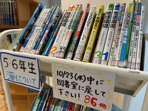 3年生が図書室で学習していました。新しい図書室はオープンで、読書を楽しんでいるこどもたちの様子がよく見えます。「何冊借りたの?」と聞くと「3冊だよ」「こういう本借りたよ」と教えてくれました。