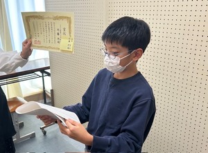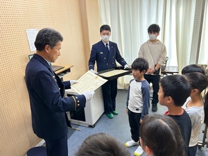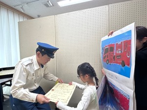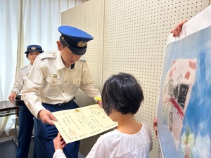 2年生が5月に消防署で描いた絵画の表彰が行われました。消防署の方から直接賞状や記念品をいただきました。1年生は来年の目標になりそうです。
