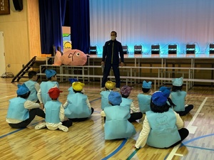今学期も残すところあと一週間となりました。冬休みに入る前に改めてこどもたちの命を守る「安全教室」を開きました。講師は大田区教育委員会で安全にかかわるお仕事をされている方々です。小さいはねっぴょんもやってきて、「もしも」の時に自分の命を守る行動について大切なお話をしていただきました。ご家庭でも年末年始の行動について、ぜひ安全第一で約束・ルールを決めてほしいと思います。