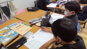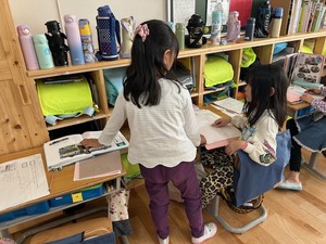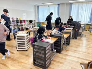 2年生が国語・算数の学習計画を自分で立てて学びを進める学習を始めました。自分のペースで進めたり、友達と相談しながら進めたり学び方は自由。先生はこどもたちが自分で学習を進められるよう準備し、授業中は一人一人を丁寧に見て回っています。あっという間に時間が過ぎたのか「え?もう終わりなの」「まだやりたい」の声。素敵ですね。