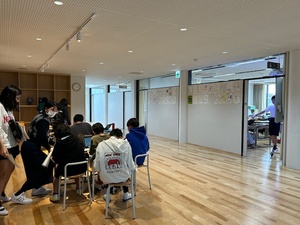 新校舎には広いオープンスペースがたくさんあります。オープンスペースもこどもたちにとっては学びの場。学びたくなる教材配置や環境づくりを模索中です。