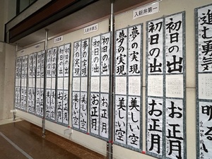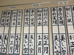 今日から校内でも書初め展が始まっています。写真は学校の代表として選ばれたこどもたちの作品が池上会館に展示されている様子です。入新井第一小学校のお隣には山王小学校と入新井第五小学校の作品が展示されていました。機会がありましたら、ぜひ他校のお友達の作品も見てほしいです。