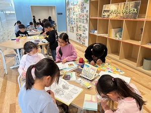 アトレ大森とコラボし、本校の開校150周年もからめて未来の大森駅周辺を創造する絵画を展示しています。作成したのは教科「おおたの未来づくり」で、アトレ大森と大森をおおもり上げしようと活動に取り組んでいる5・6年のあるチームです。まだ展示されていますので、ぜひお立ち寄りください。