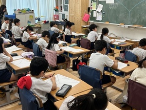 早いもので2024年も半分が終わり、今日から7月です。4月に入学してきた一年生もすっかり小学校生活にも慣れて、学習も落ち着て進めています。算数や国語のしあげの問題や読み書きの基本の振り返りを行っていました。今月は夏休みに向けた学習のまとめや休み中に取り組んでほしいことなど各学年・学級でお話があることでしょう。