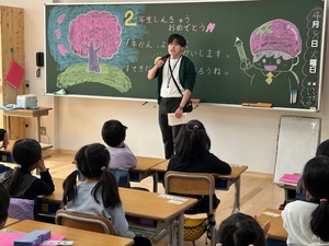 乳歯から永久歯に生え変わっている子も多い2年生。今日は保健の先生になるために勉強に来ている実習生から、歯について教えてもらっていました。自分の歯を鏡でしっかり見て歯の形、生え方等に関心をもって見ていました。自分の歯でこれからもおいしいものがいただけるよう、今日学んだことを生かしていきましょう。