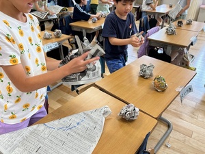今日は3年生が学校の近くにあるクロームメッキ工場へ見学に行きました。お話を聞くだけでなく、実際にクリップに銅メッキをかける体験や、メッキ加工をする職人さんの技術を間近にみることができました。ものづくりの街・大田区について視野が広がる体験と見学ができたようです。
