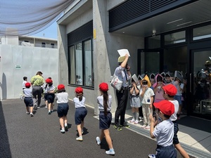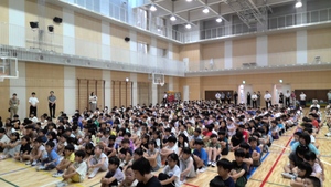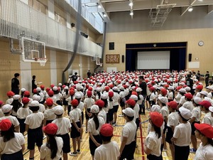 長い夏休みが終わって新学期が始まりました。こどもたちが新校舎に集まっての初めての始業式です。その後、新校舎に入った記念として「入校式」も行いました。なかよし班で各校舎を回り、新しい図工室や音楽室などきれいな施設に心を躍らせていました。引き取り訓練でも保護者の方々に見ていただき「オープンなスペースがいっぱいあって、とても素敵ですね!」「こんな図書室だと入りやすいし本もきっとたくさん読んでくれるかな」など学びに期待を寄せていただくご意見もいただけました。いろいろなことが楽しみです。