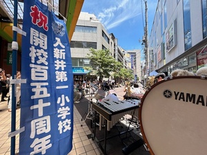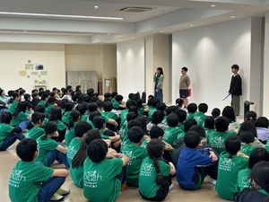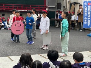 3年生のこどもたちは地域のミルパ商店街について、地域の方からお話を聞いたり、出かけたりしてこれまでたくさんのことを探究してきました。今日は150周年のお祝いも兼ねて、お世話になった地域に感謝するこどもたちの手によるこどもたちのわくわく祭りを開催しました。寒い中たくさんの観客を前に素敵な発表をすることができました。全校の児童のみなさんにも見てもらいたい発表でした。