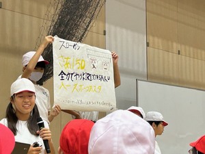 きり組とさく組の二つのチームを率いる応援団長の二人。全体練習でも堂々たる声出しと動きで応援団長としてのハートの強さを感じます。今日の全体練習では応援団が一体となってみんなを盛り上げてくれました。応援団長のお二人、本番までがんばってください!