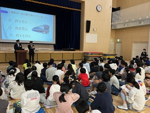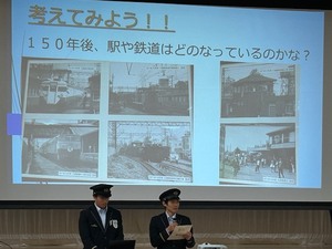 5・6年生は教科おおたの未来づくりの学びでゲストティーチャーから様々なお話をうかがっています。そのひとつに来年開業150周年を迎えるJR大森駅があります。今日は大森駅の駅長さんをはじめ、職員の方が6名来校し、こどもたちに駅の未来について考えるミッションを与えてくれました。「駅の困りごと」から「駅を中心にどんな街になっていくといいか」考えるきっかけを与えていただきました。これからみんなで知恵を出し合って解決策を考えていきます。