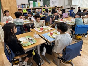 「こぎつねコンコン山の中 山の中~」とこぎつねの気持ちを考えながら歌っていた2年生。歌詞にあるこぎつねとその風景をいろいろと想像しながら「この歌知っているよ」と元気に歌っていました。階名でも歌ってみて、鍵盤ハーモニカの演奏にもつなげていくようです。連休明けですが、こどもたちはおいしい給食後も元気に歌って過ごせていました。