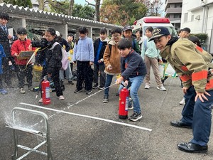 冬の乾燥している日が続いています。火災のニュースも多く、火の取り扱いには気を付けたいですね。3年生は大森消防署で働く消防士さんに仕事のやりがいや工夫、どんな訓練をしているかなど教えてもらいました。メモをとるだけでなく、実際に消火器(中は水)の操作体験もさせてもらいました。初期消火の大切さも教えてもらえたようです。