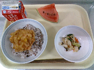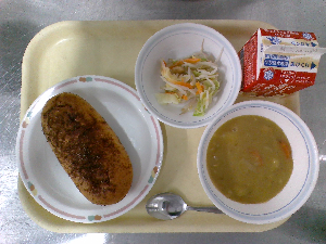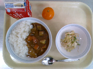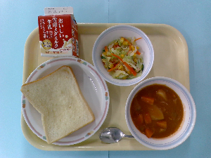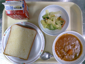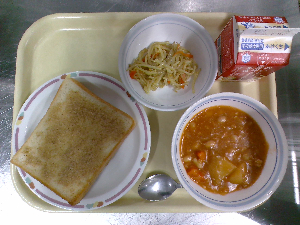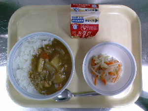 【今日の給食】牛乳 カレーライス フレンチサラダ