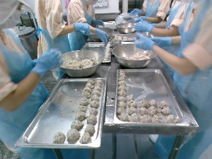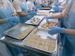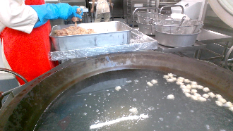豆腐ボール成形の様子