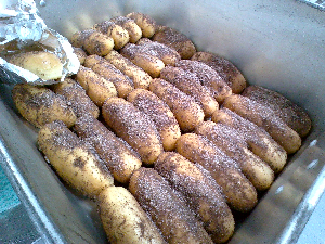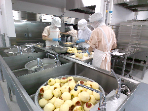 今日の給食では入一小の人気メニューであるビーンズポテトを作りました。