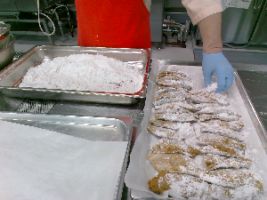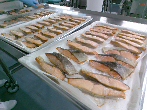 今日の給食で使っている魚はサバです。